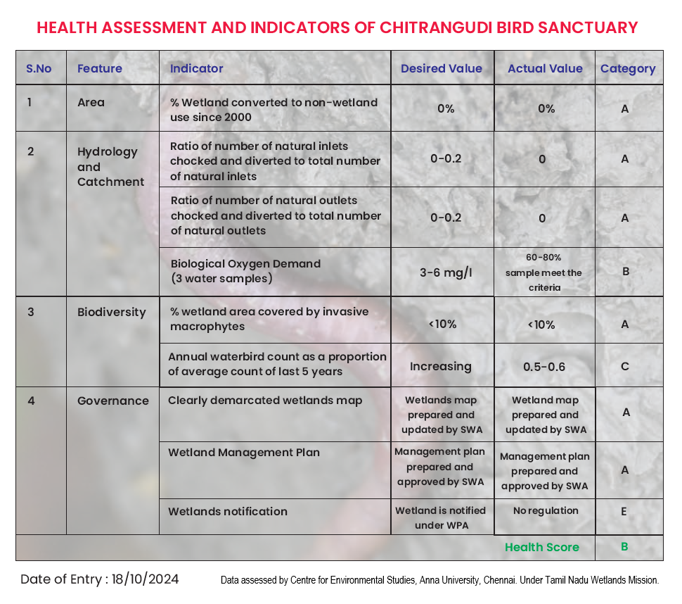 Listed as international bird and biodiversity area with IBA site code : in-tn-06, by bird life international and is a part of the central asian migratory flyway, The farmers are benefited from the guano (bird excreta) enriched water that is used for irrigating their farmlands