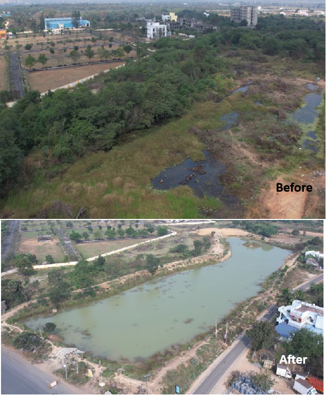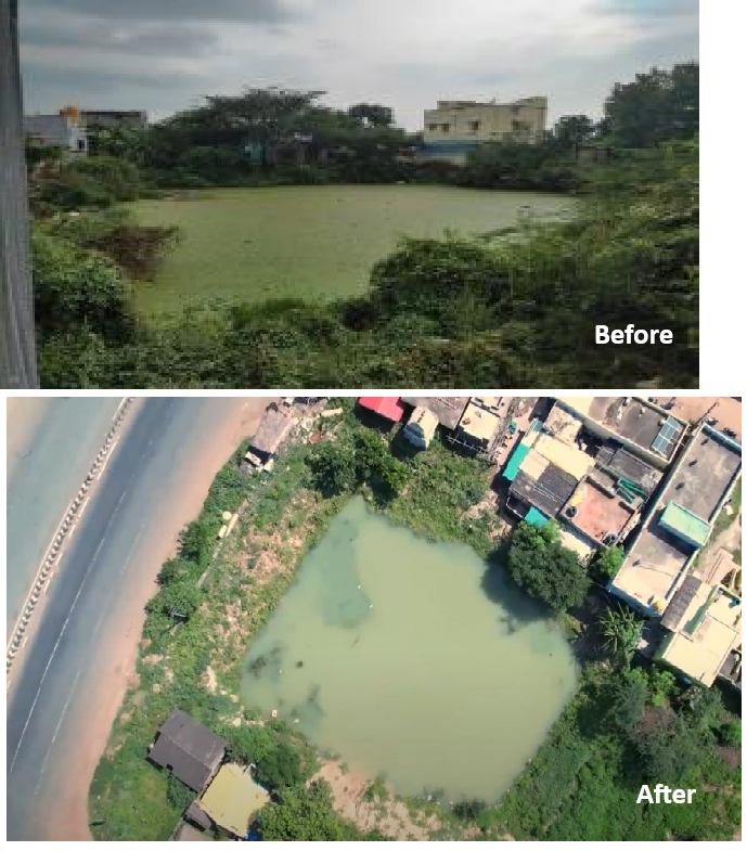 Restoration activities has been carried out by the NGOs cleaned the grass waste from lake and 50 tree saplings planted