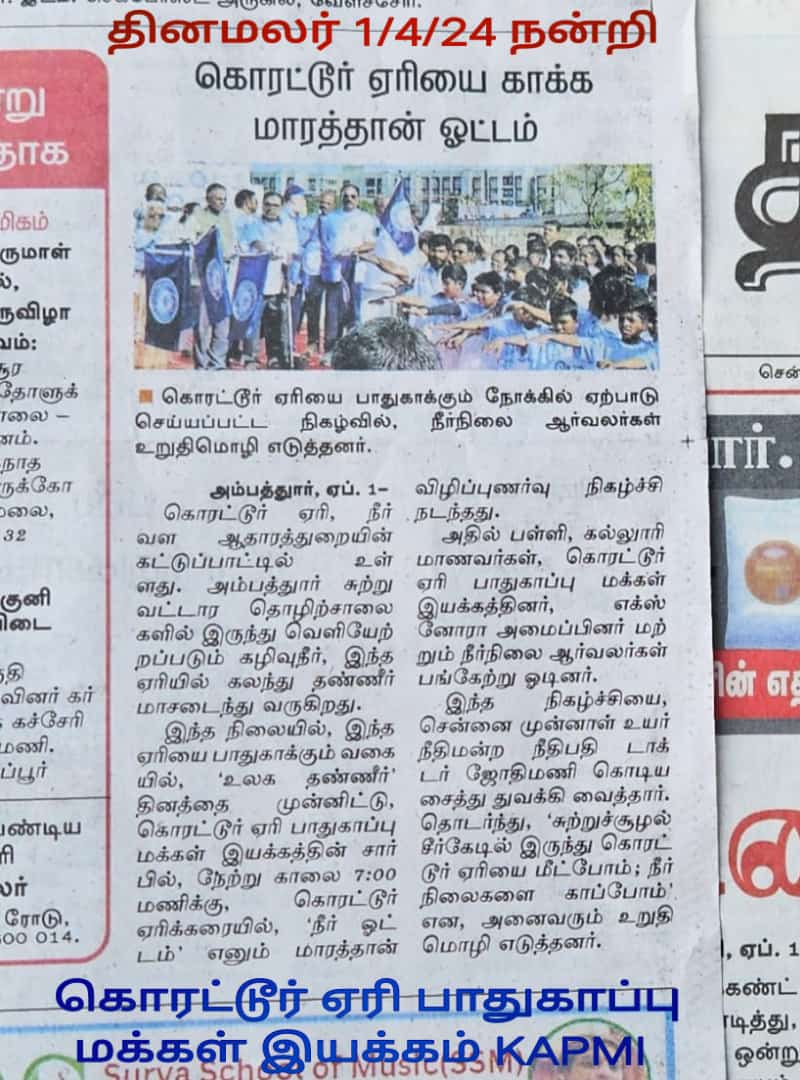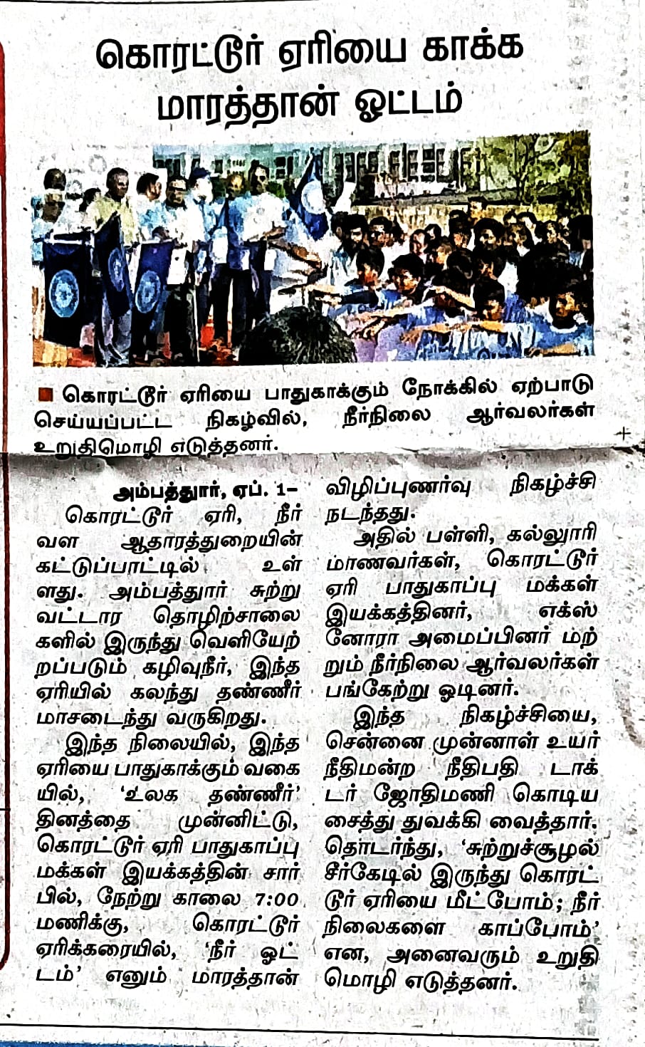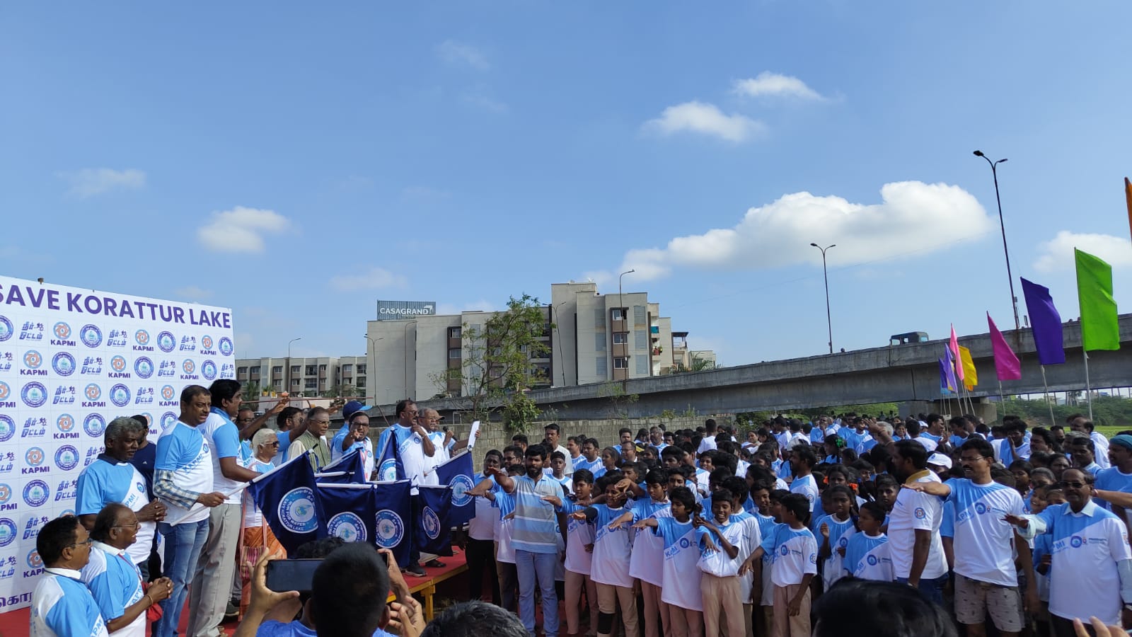 கொரட்டூர் ஏரி நீர் நிலை பாதுகாப்பு இயக்கம் மாபெரும் பேரணி முதியோர் முதல் குழந்தை செல்வங்கள் வரை பிரமாண்டம் மக்கள் சேவை விழிப்புணர்வு