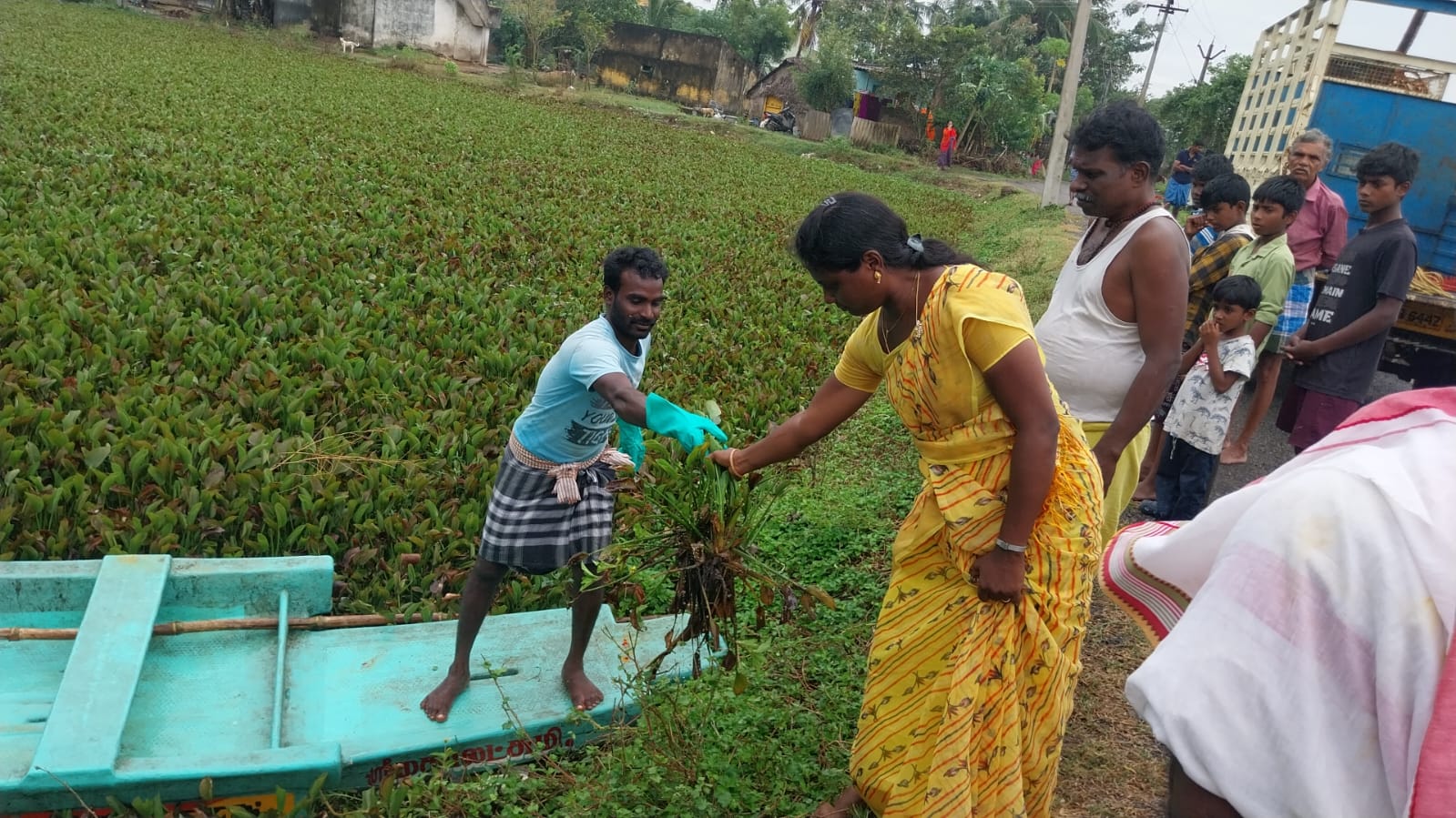 Clean-up activities has been carried out by the local community people, the 2 loads of water hyacinth waste collected from arafath lake