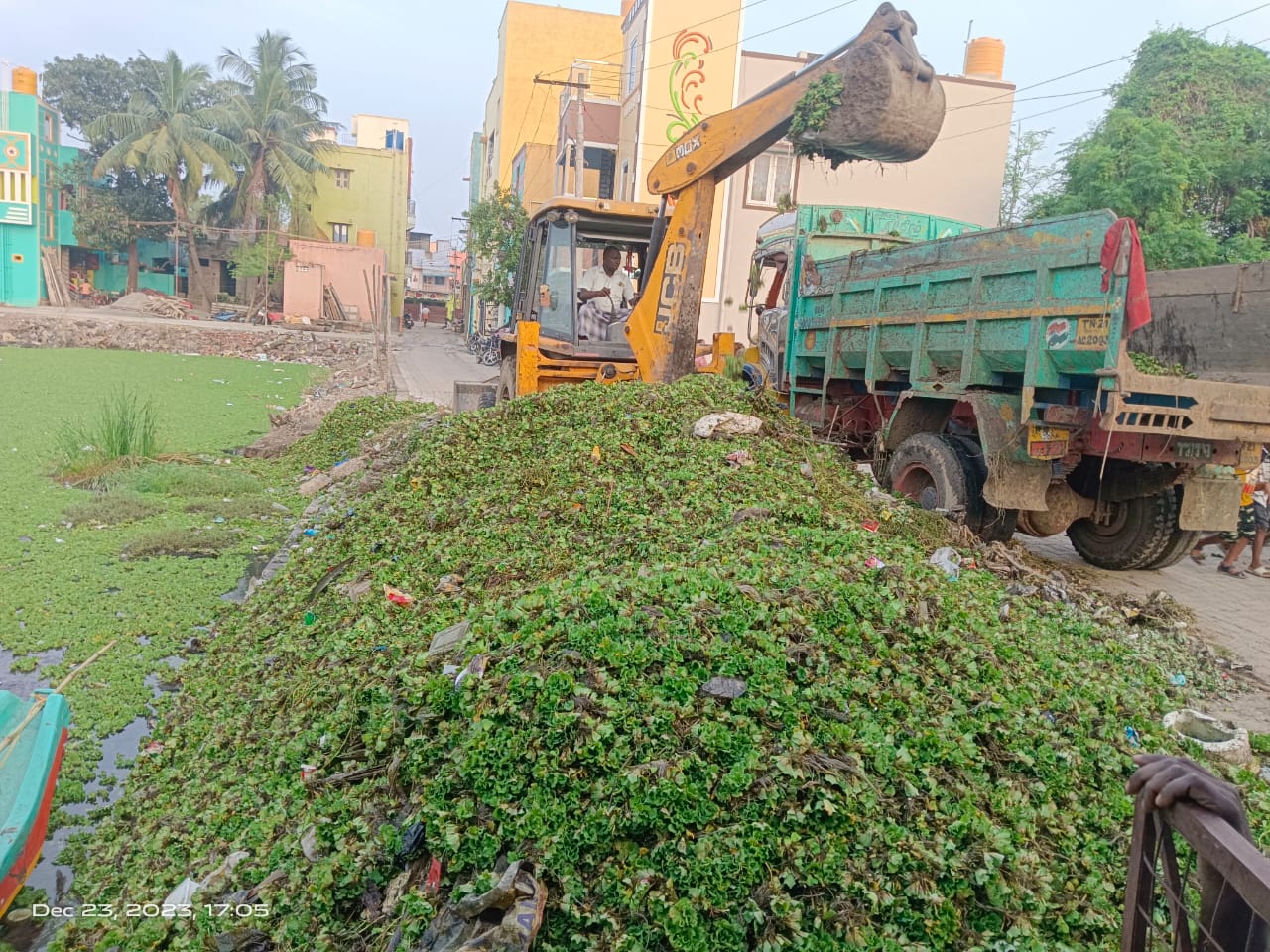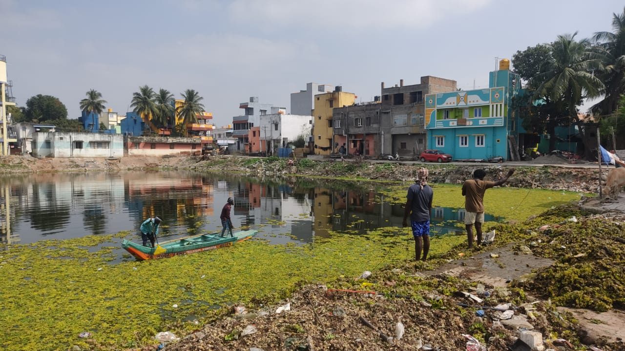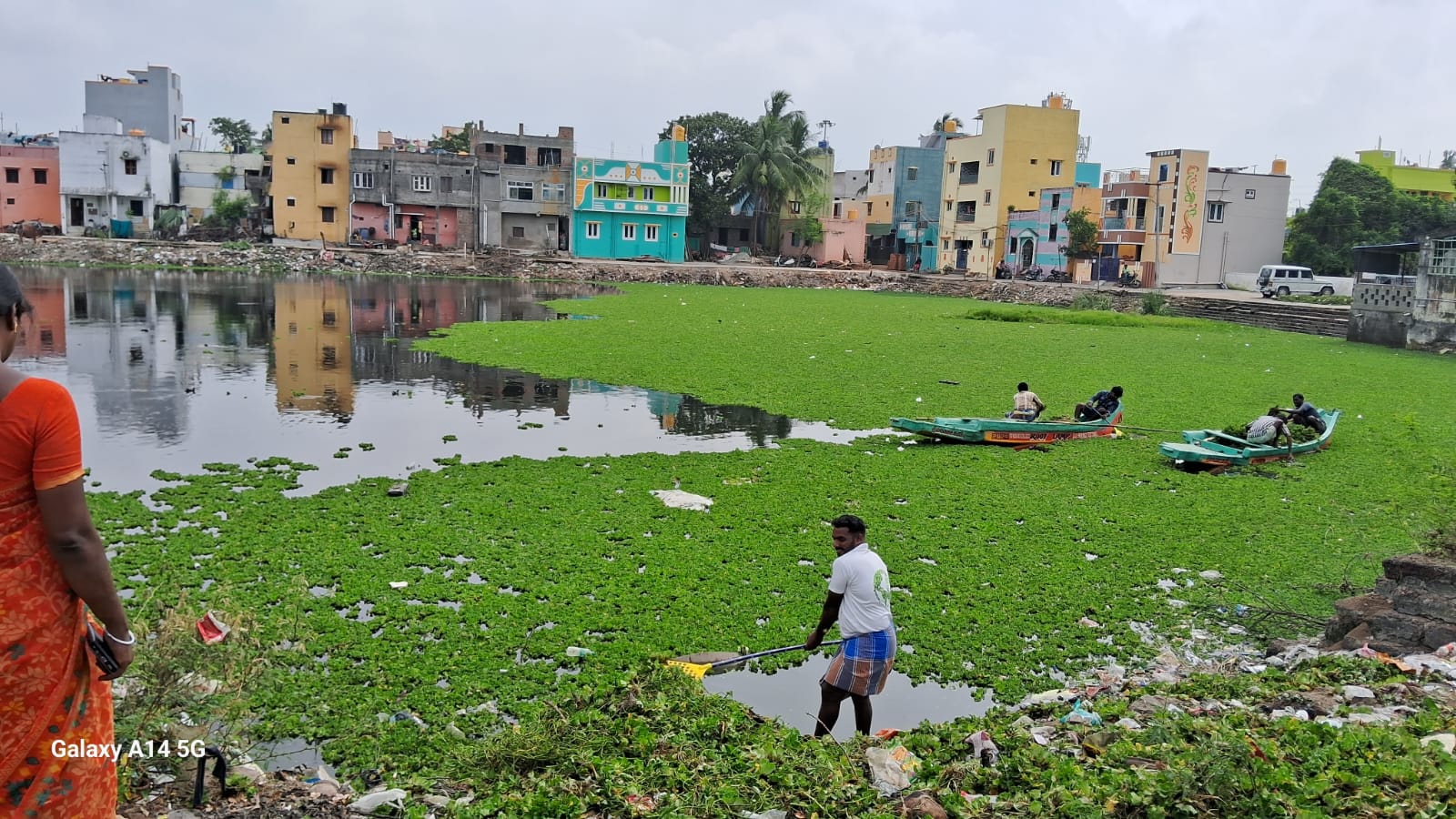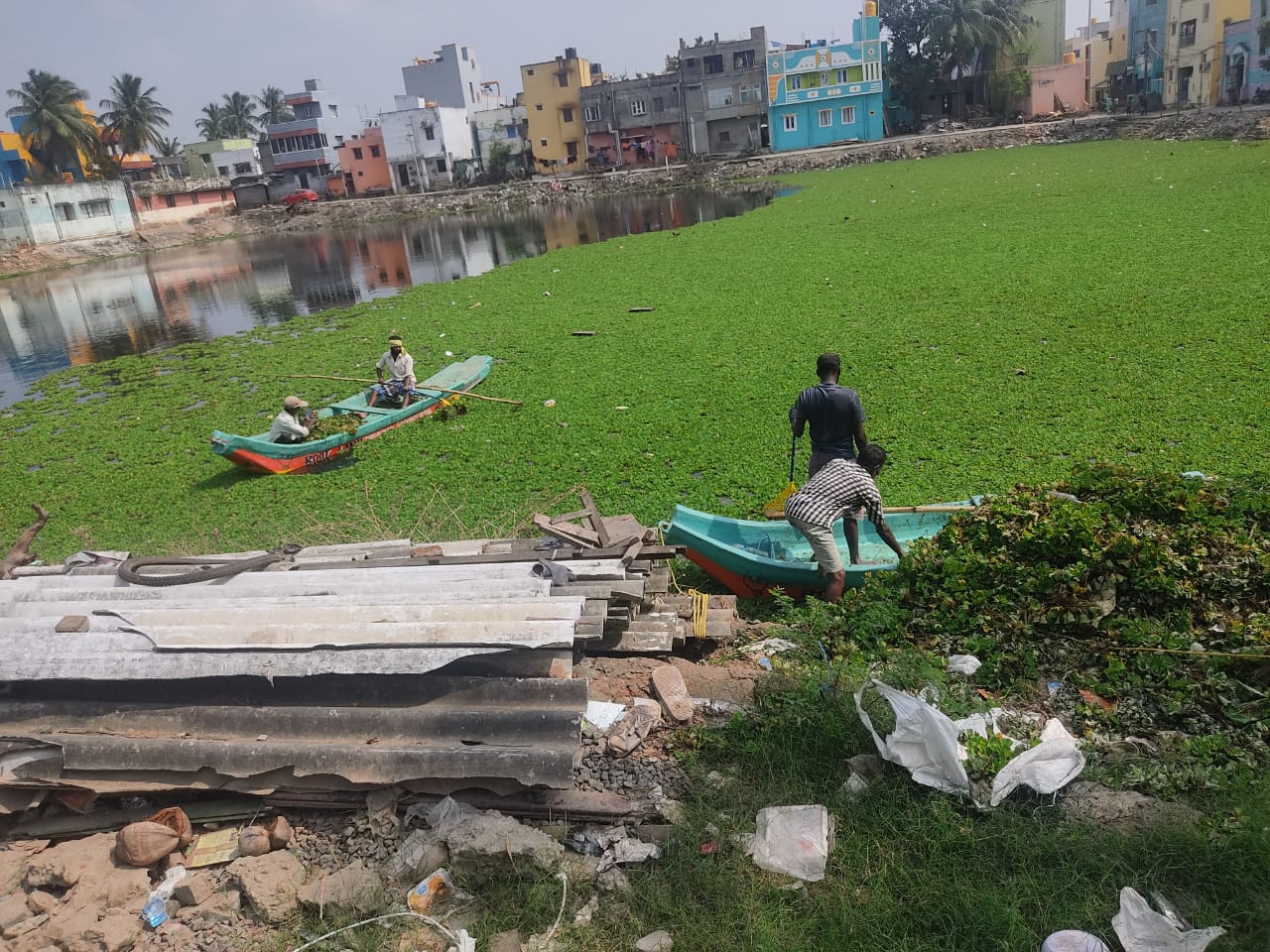 Clean-up activities has been carried out by the Mahatma Gandhi NREGA, the 100 tractor of waste collected from lake and it is recycled to yoga mat, flower bouquet, etc.,