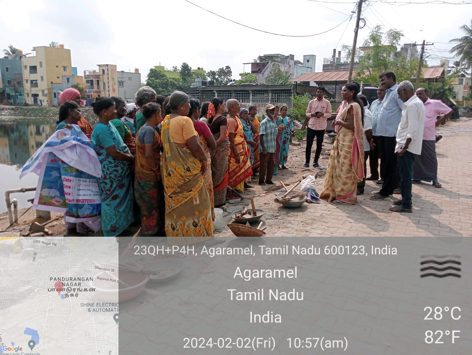 On 25th February 2024, a community event was held at Meppur Pond, located in Meppur village, Poonamallee taluk, Thiruvallur district, where over 100 people participated, planting 100 trees and collecting 120 kilograms of waste to support wetland conservation efforts.